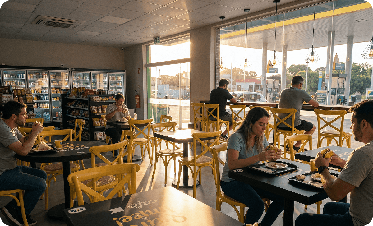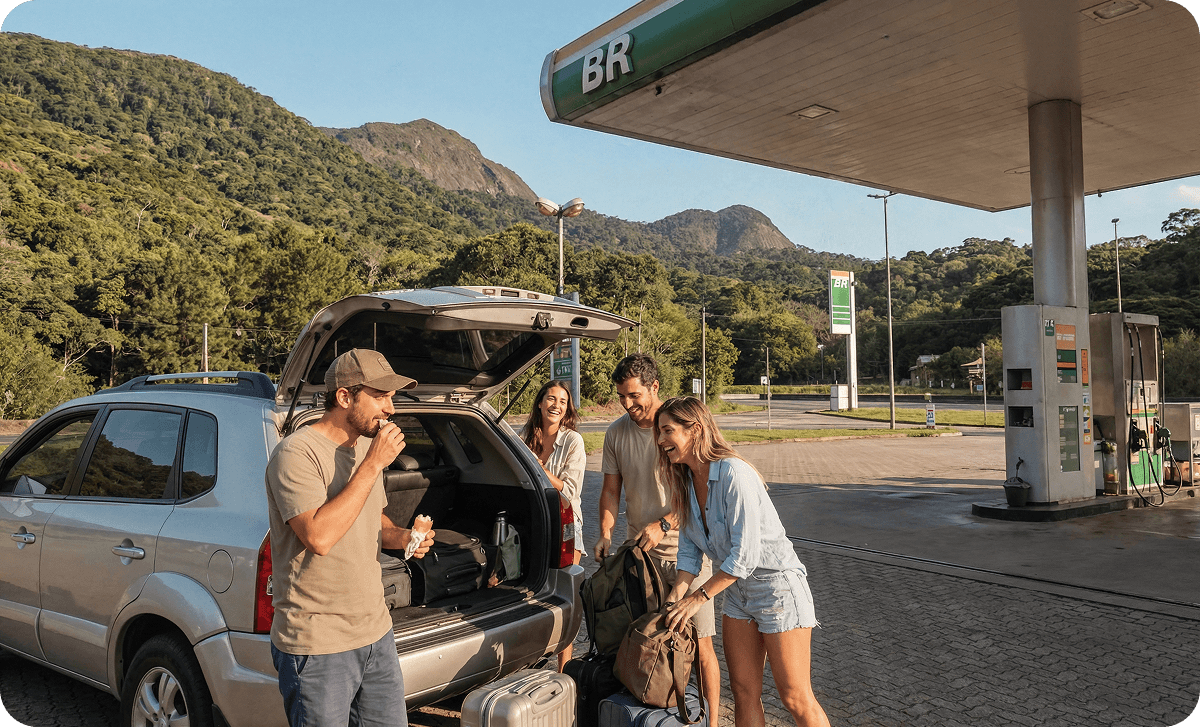 Apenas pisás Brasil, hacé tu primera pausa. Este posto tiene wifi, snacks y la mejor onda para viajeros. Consultá tu saldo en la app de belo, ajustá el GPS y arrancá tranquilo.